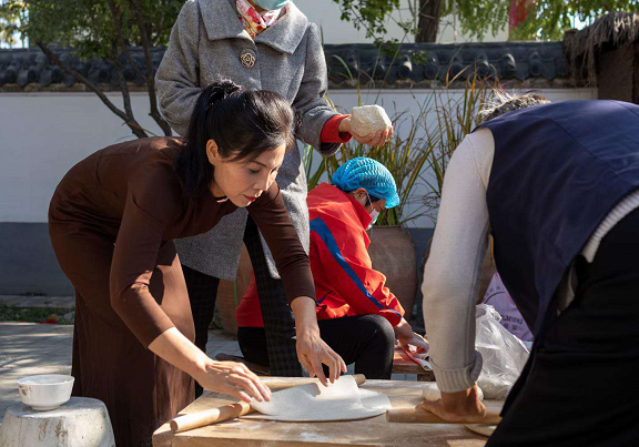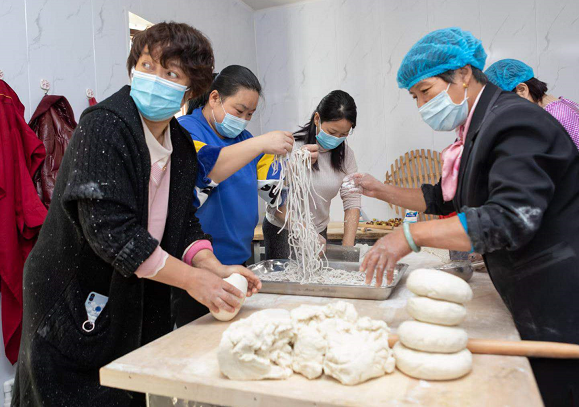 经过一阵忙碌,把一碗碗热气腾腾的长寿面送到了老人们手中,