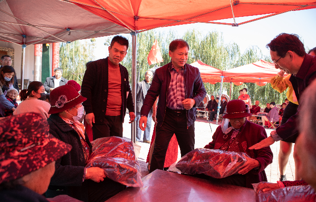 为村里80岁以上的老年人购买了崭新的棉衣,