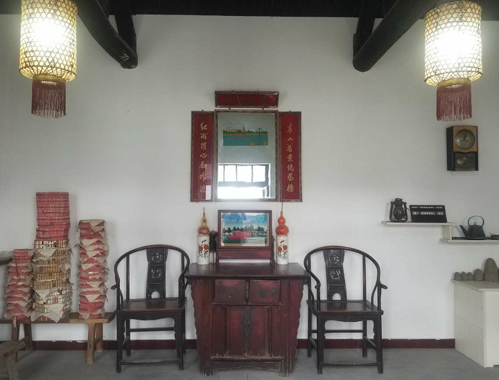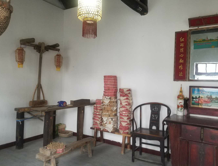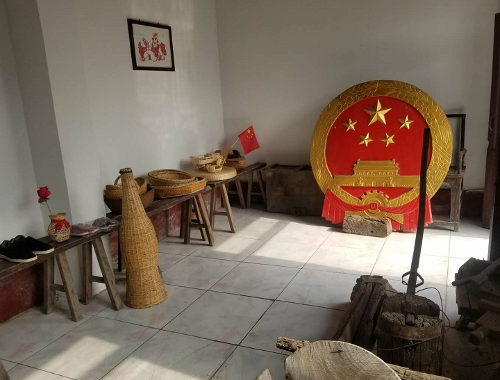 乌东博物馆内陈列的传统农耕农具、老式生活用品。