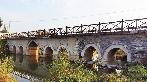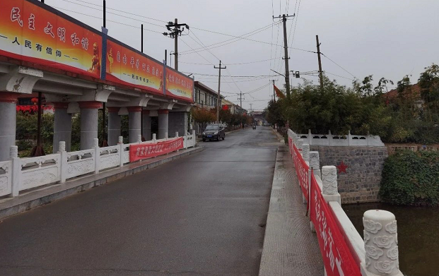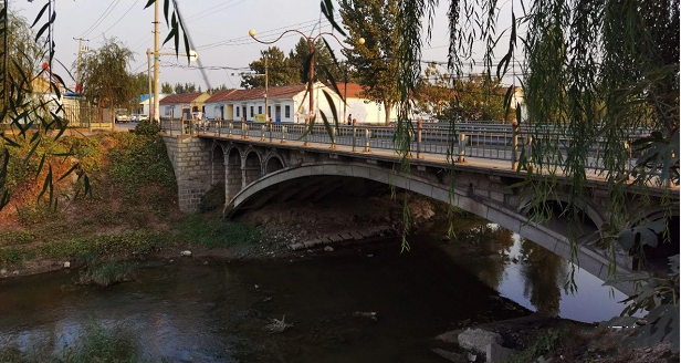 青石桥墩的九孔石拱桥。该桥多次有解放军的重型炮车和坦克车通过,
